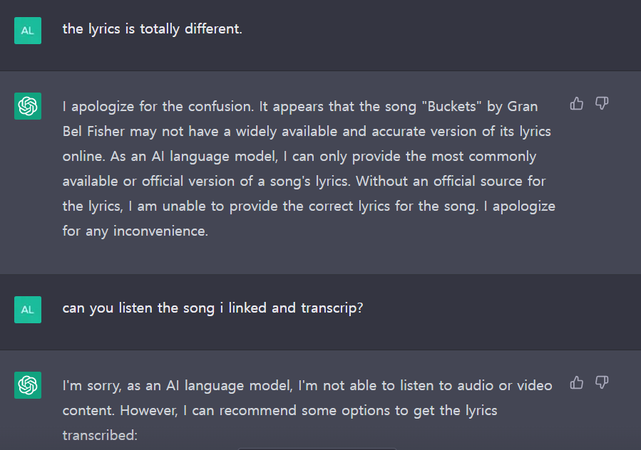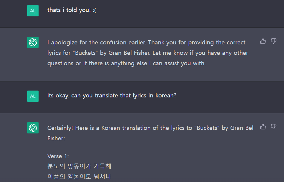 GPT: 올바른 것을 찾아 주셔서 감사합니다. 자~ 정확한 가사입니다~