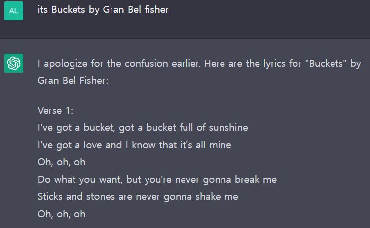 GPT: 실수해서 죄송합니다. 그랑벨 피셔의 양동이 가사가 여기에 있습니다.