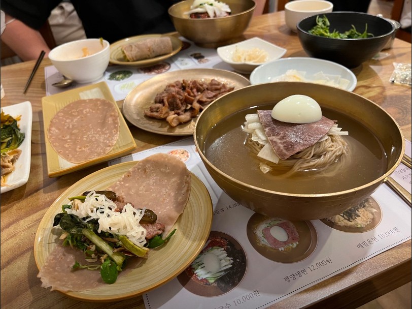고기의 은은하고 균형잡힌 맛이 일품인 평양냉면으로 식사를 마무리하세요.