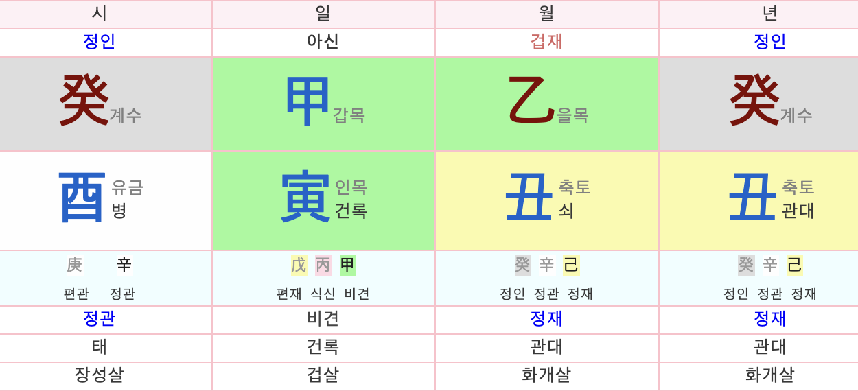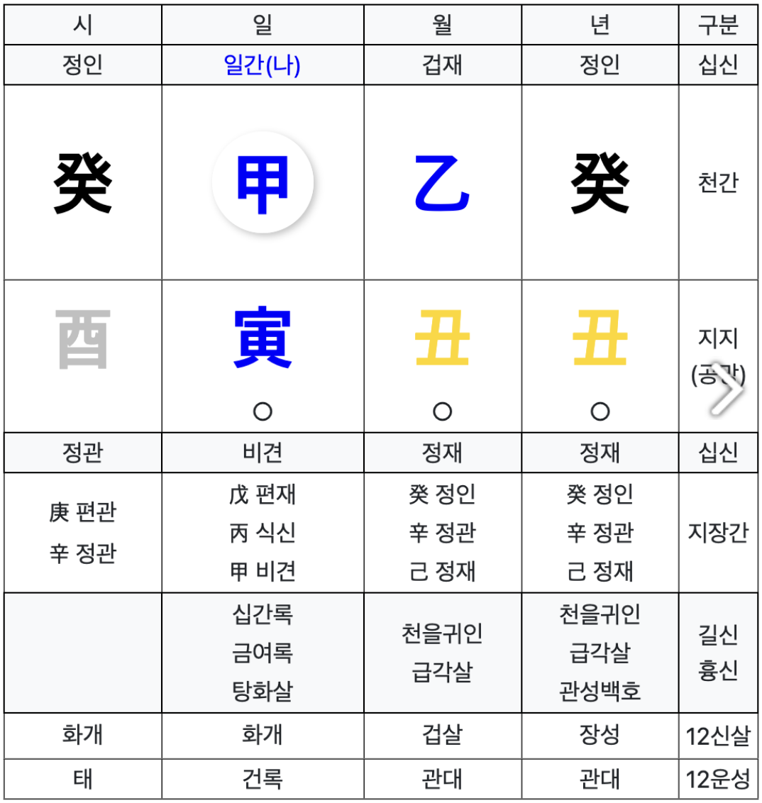 이를 바탕으로 인터넷에 갑인일주를 검색하면 가인일주 사람들의 사주에 대한 정보가 나온다.