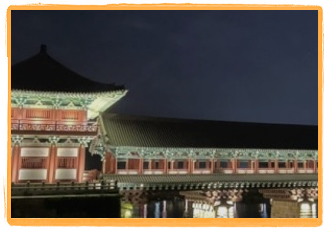 낮에도 밤에도 갈 수 있고 밤에만 느껴지는 월정교의 풍경을 감상할 수 있다. 경주에서 1박 이상 묵을 계획이라면 밤에 가보는 것을 추천한다. 돌다리를 건너면서 평화로운 분위기를 즐겨보세요.