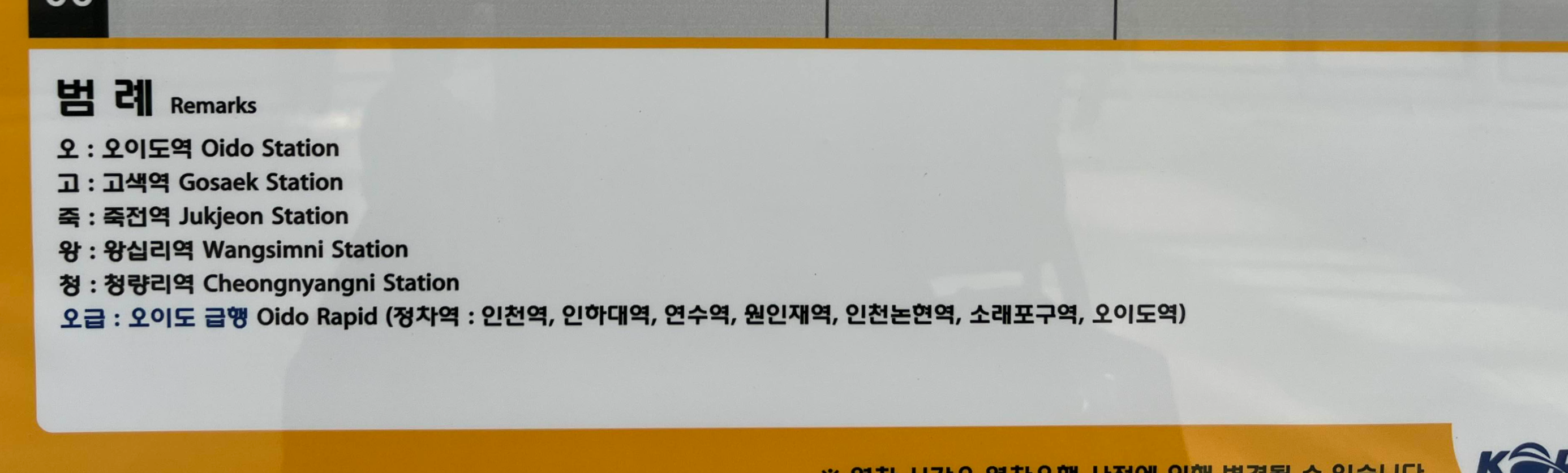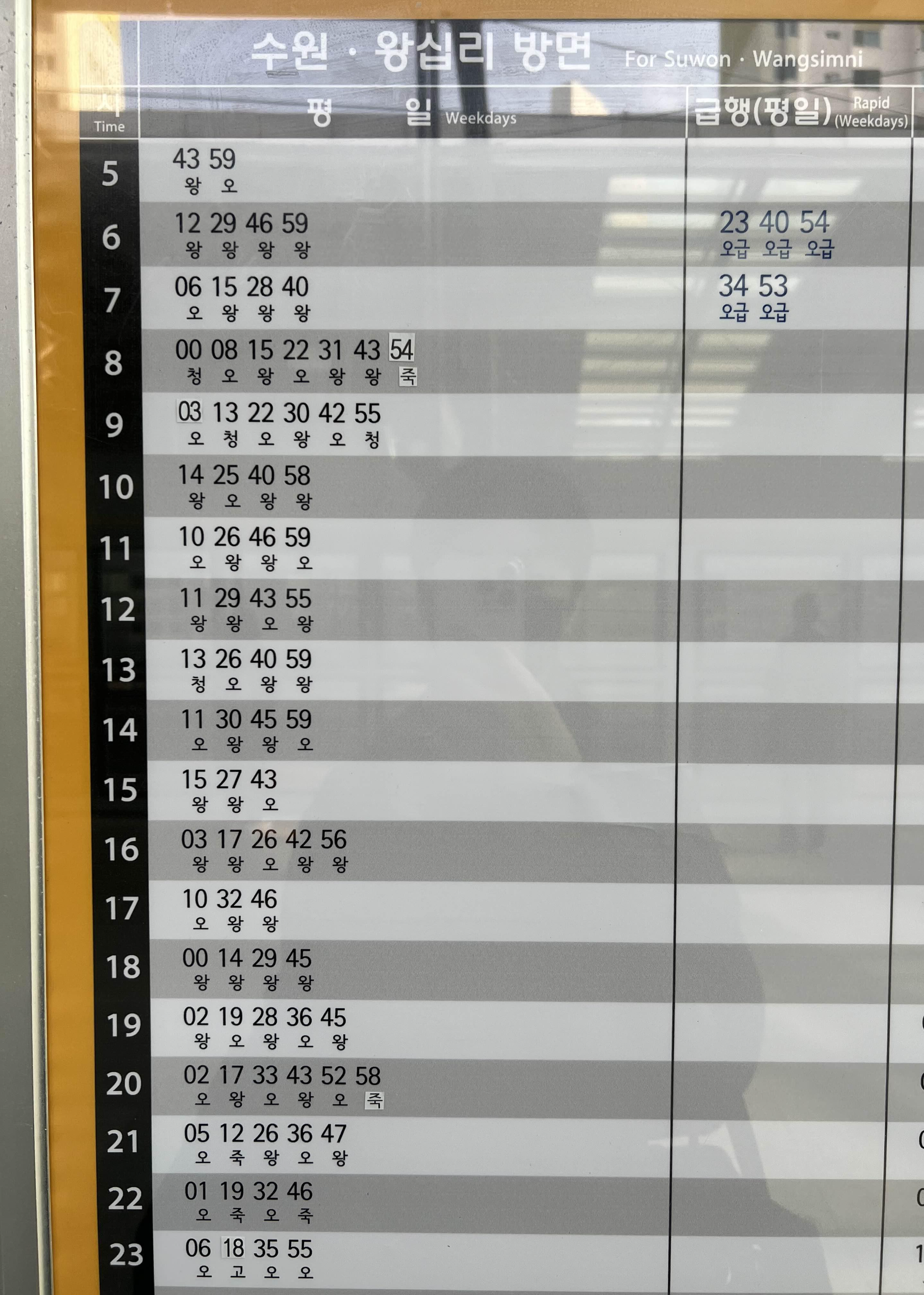 원인재 지하철(수원 – 왕십리) 시간표(오이도행) / 수인분당선