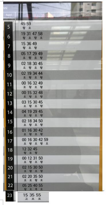 첫열차~막차시간