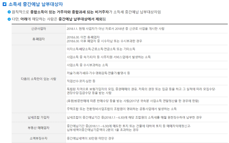 종합소득세 과세과목, 구분, 신고기간, 환급일, 과세연장기간, 중기예납약정