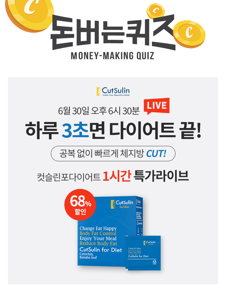 커틀린포 다이어트 특가 라이브 돈 버는 퀴즈 정답 공개
