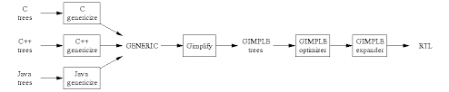 프런트 엔드는 소스 코드를 해석하여 작성된 구문이 올바른지, 문법에 따라 작성되었는지 확인합니다. 즉, 언어 종속 부분을 처리합니다. 또한 옵티마이저(일명 미들 엔드)로 전달할 GIMPLE 트리를 구축합니다.