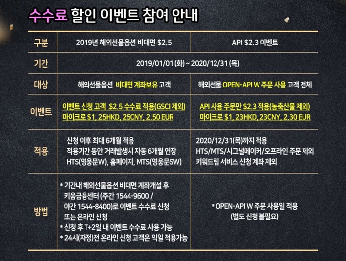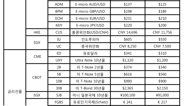 일반적으로 주식이나 금, 석유처럼 거래량이 많은 상품을 이용해야 높은 수익을 기대할 수 있습니다.다만 다음과 같은 종류는 다소 많은 증거금을 요구하기 때문에 일반적인 투자자들이 이용하기 어려운 편입니다.이때 앞서 말씀드렸다시피 다양한 종목을 소액의 증거금으로 투자할 수 있는 마이크로 상품을 활용하면 보다 쉽게 접근해 해외 선물 수익을 얻을 수 있습니다.초반부터 자신이 끌고 갈 수 있는 모든 자금을 쏟아붓고 무리하게 진행할 경우 자신의 예상과 다른 결과가 나타났을 때 모든 리스크를 떠안아야 하므로 적은 금액부터 시작해 보는 것이 좋습니다.