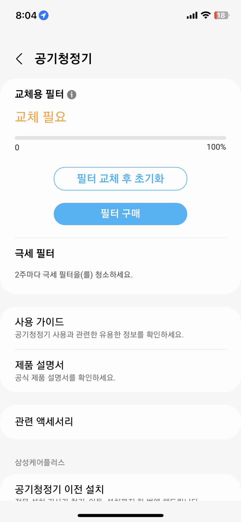 얼마전 필터변경 버튼에 알림이 뜨더군요.